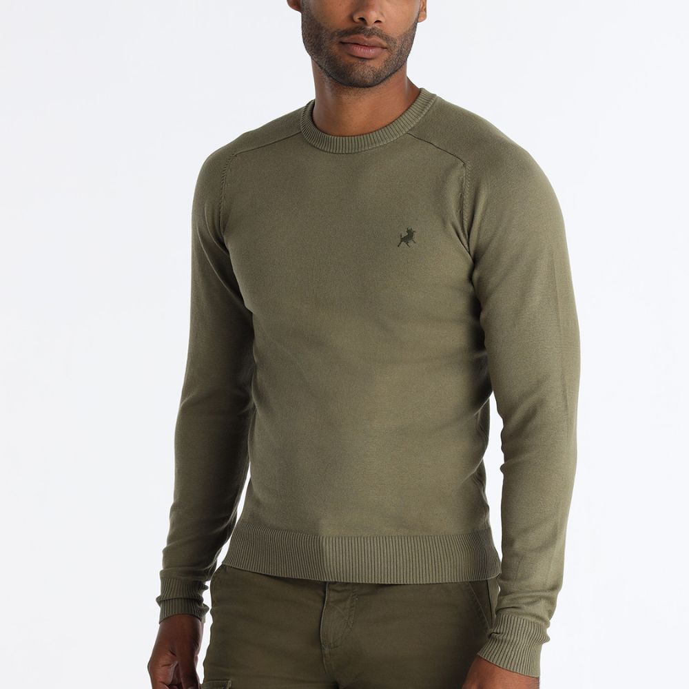 Jersey de Lois, 80% algodón 20% nylon, de cuello redondo, en color verde