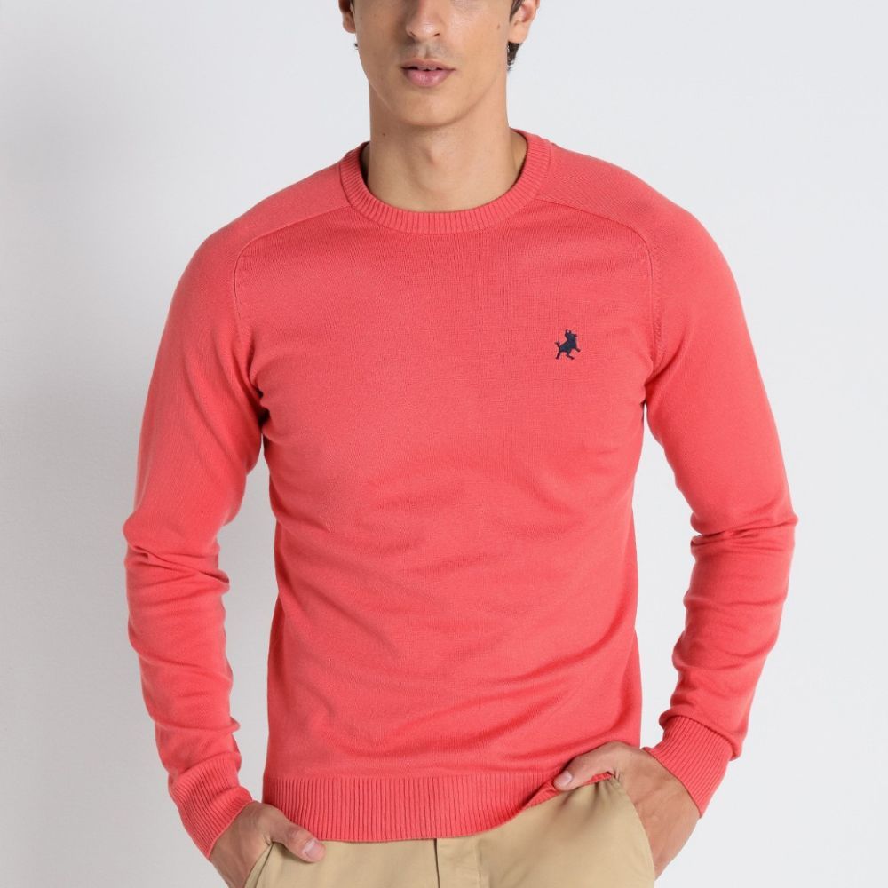 Jersey de Lois, 80% algodón 20% nylon, de cuello redondo, en color geranio
