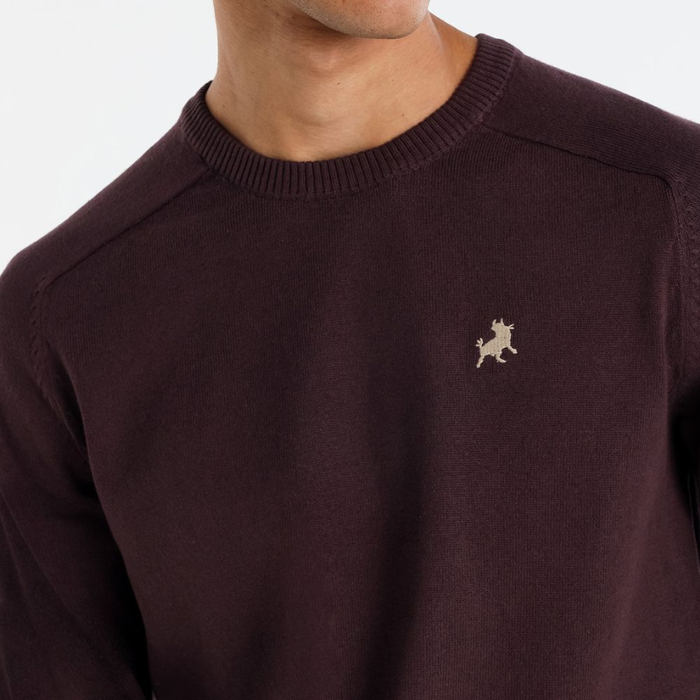 Jersey de Lois, 80% algodón 20% nylon, de cuello redondo, en color granate