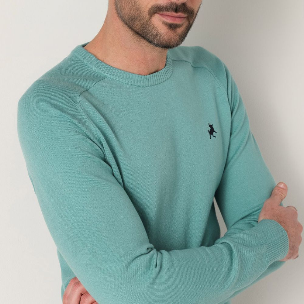Jersey de Lois, 80% algodón 20% nylon, de cuello redondo, en color verde