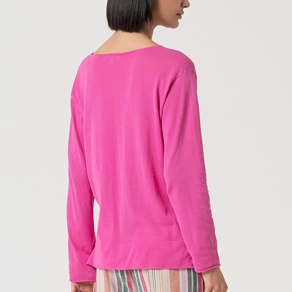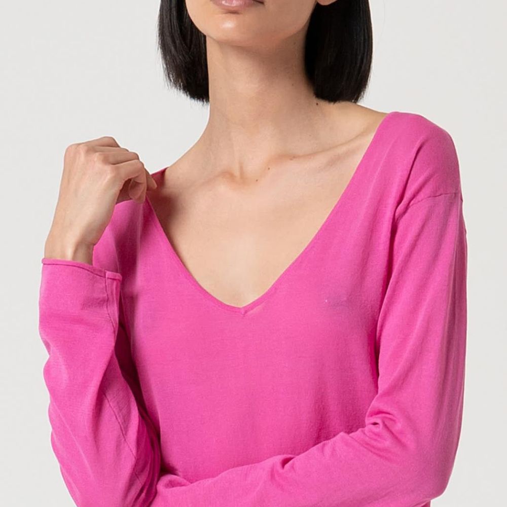 Jersey de Surkana, 100% algodón, fino, cuello pico, cortes laterales, en color rosa