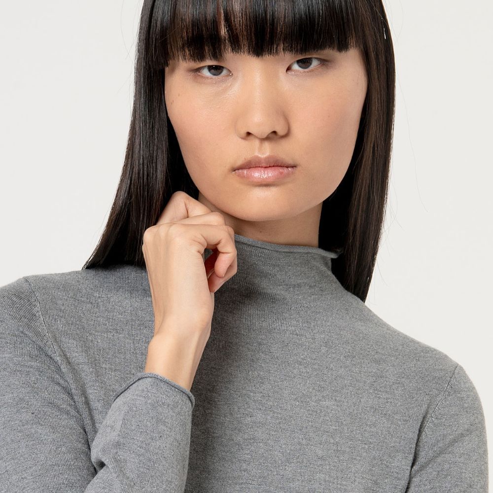 Jersey de Surkana, 80% viscosa bambú 20% elastano, cuello semi cisne, en color gris vigoré