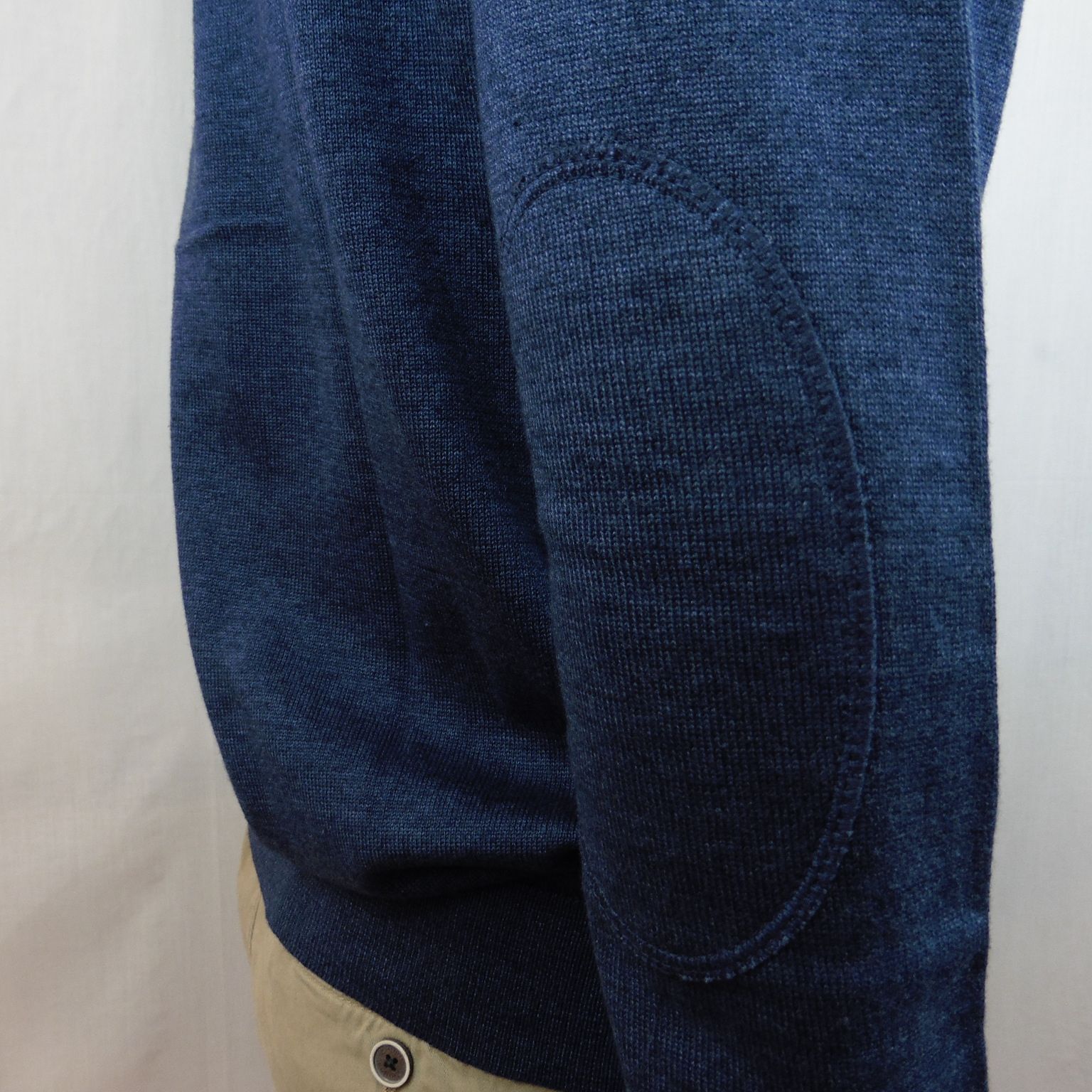 Jersey de Tomé, 50% algodón 50% acrílico, cuello redondo, fino, con coderas al tono, en color azul medio