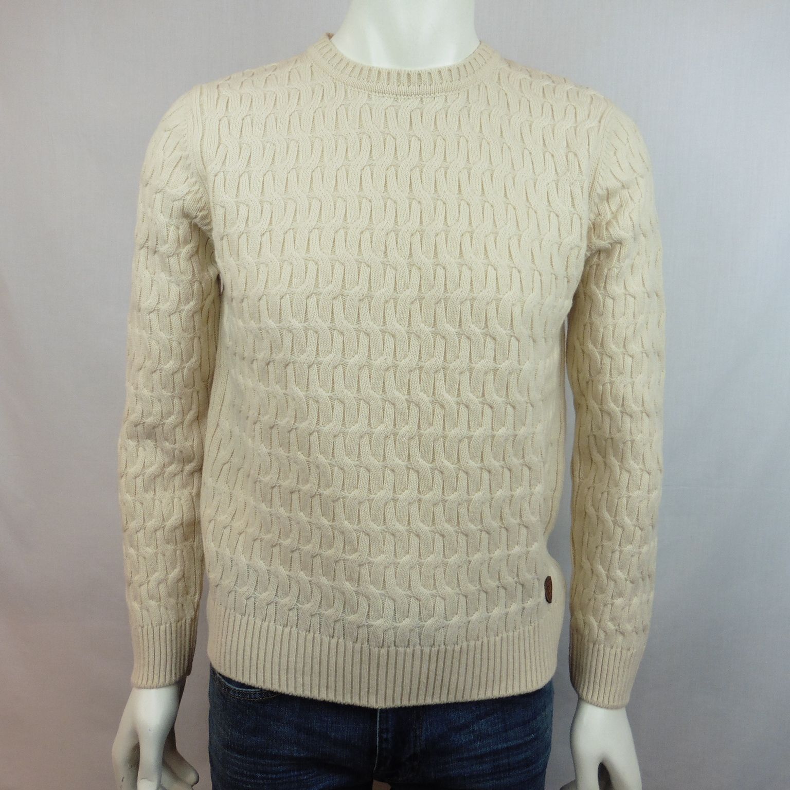 Jersey de Tomé, 70% acrílico 30% lana, cuello redondo, con ochos en color crudo