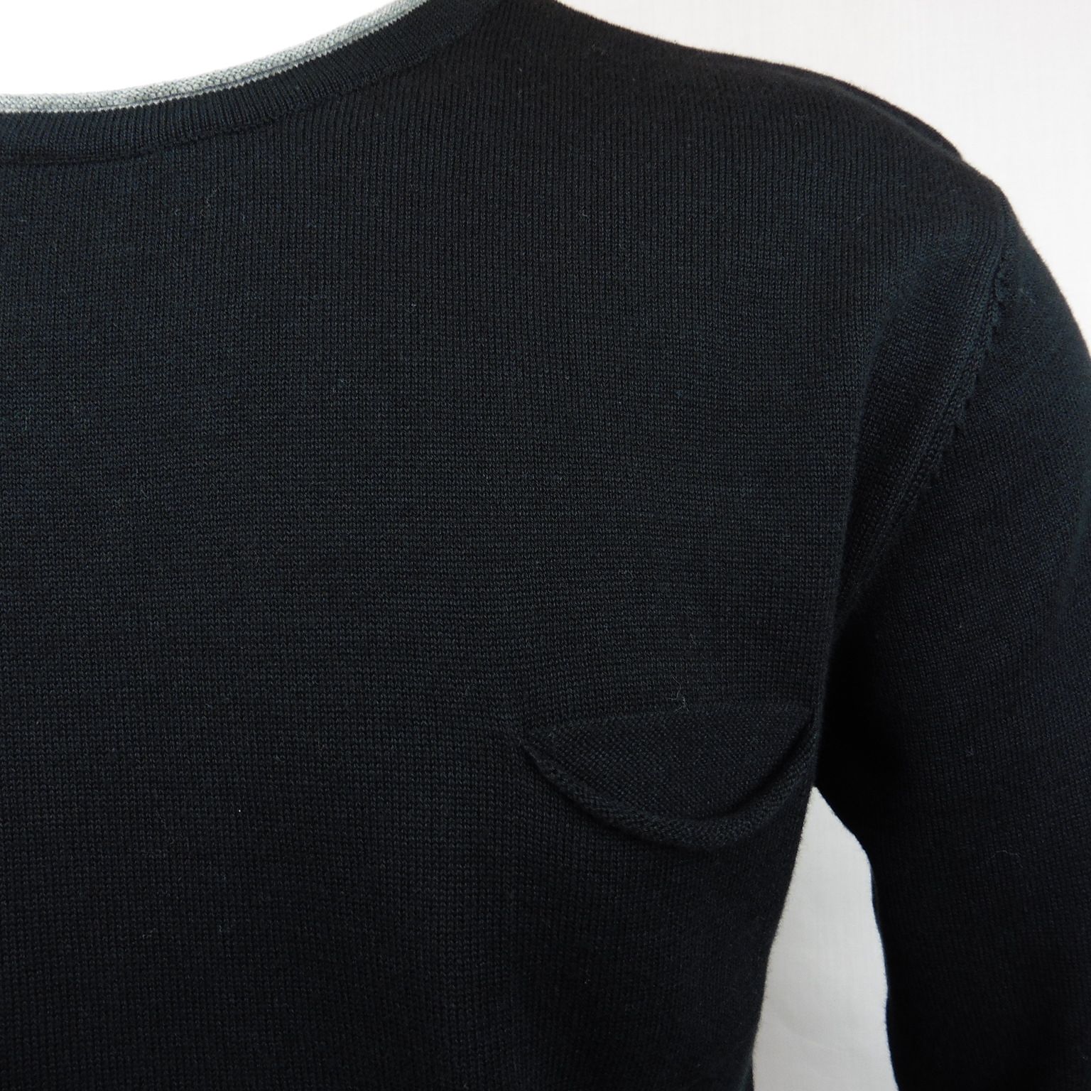 Jersey de Tomé, 50% algodón 50% acrílico, cuello redondo, fino, con bolsillo, en color negro con vivo en el cuello en color gris
