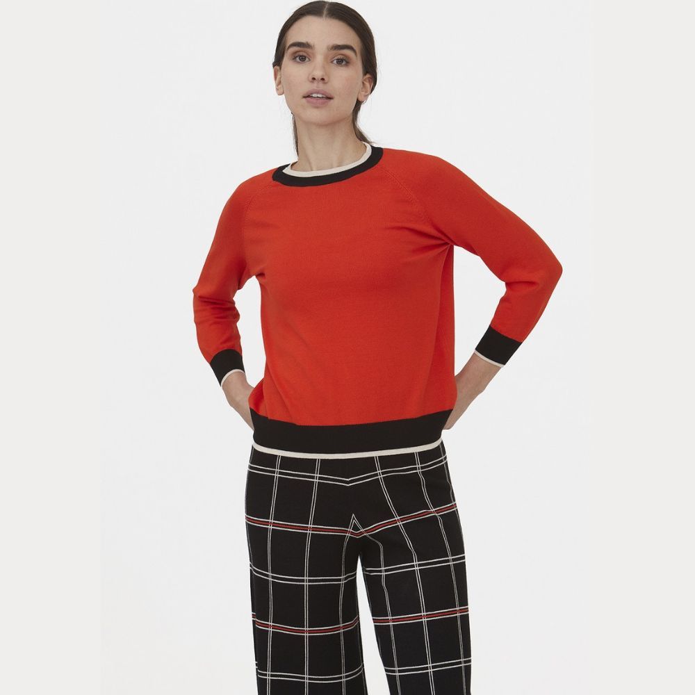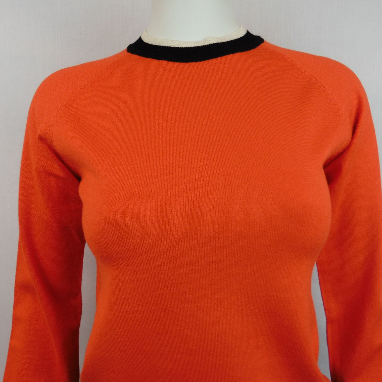 Jersey de WNT Collection, 80% viscosa 15% poliamida 5% nailon, de cuello redondo, manga ranglan, en color naranja con vivo negro y crudo en cuello, puños y bajo
