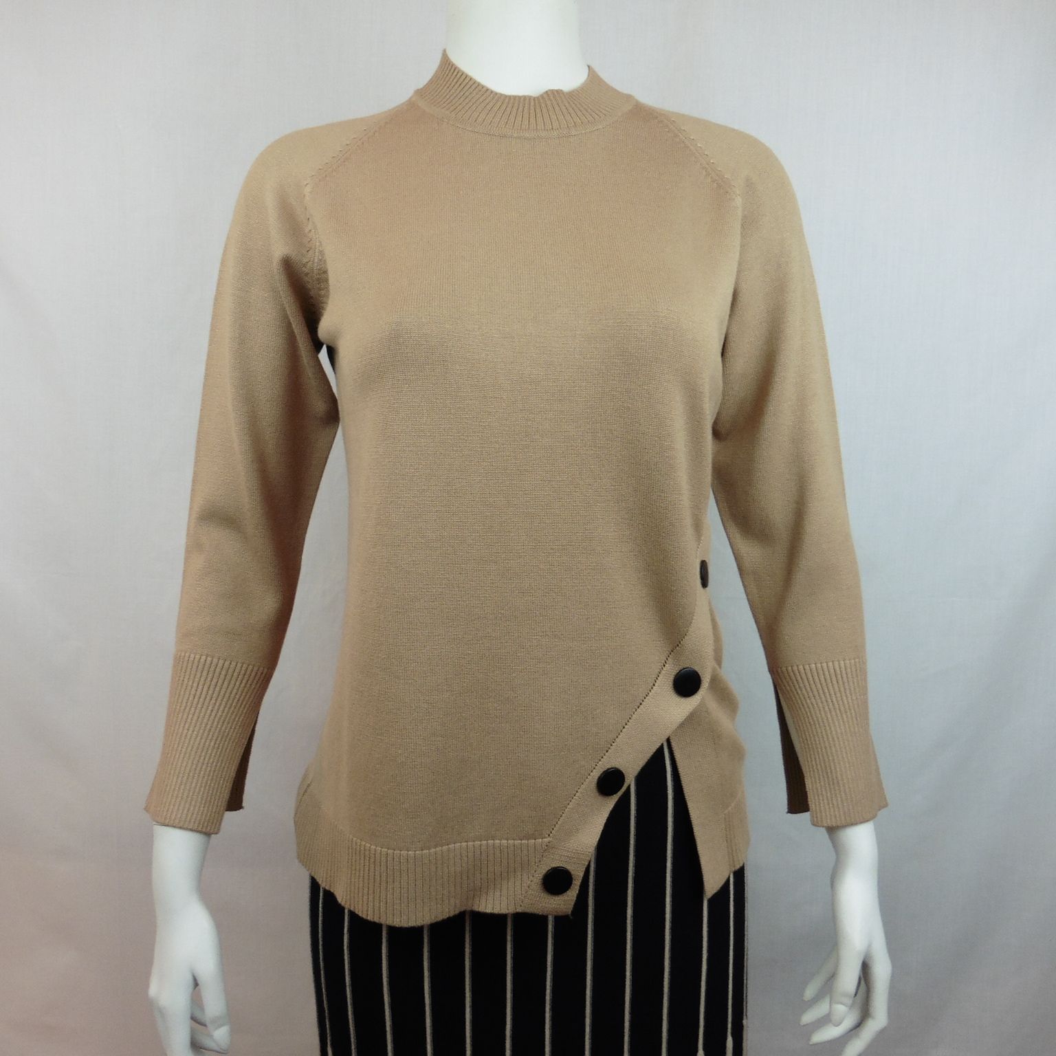Jersey de WNT Collection, 80% viscosa 15% poliamida 5% nailon, de cuello redondo, manga ranglan, con botones metálicos en diagonal de adorno en el lado izquierdo, puños largos de canalé fino, en color garbanzo