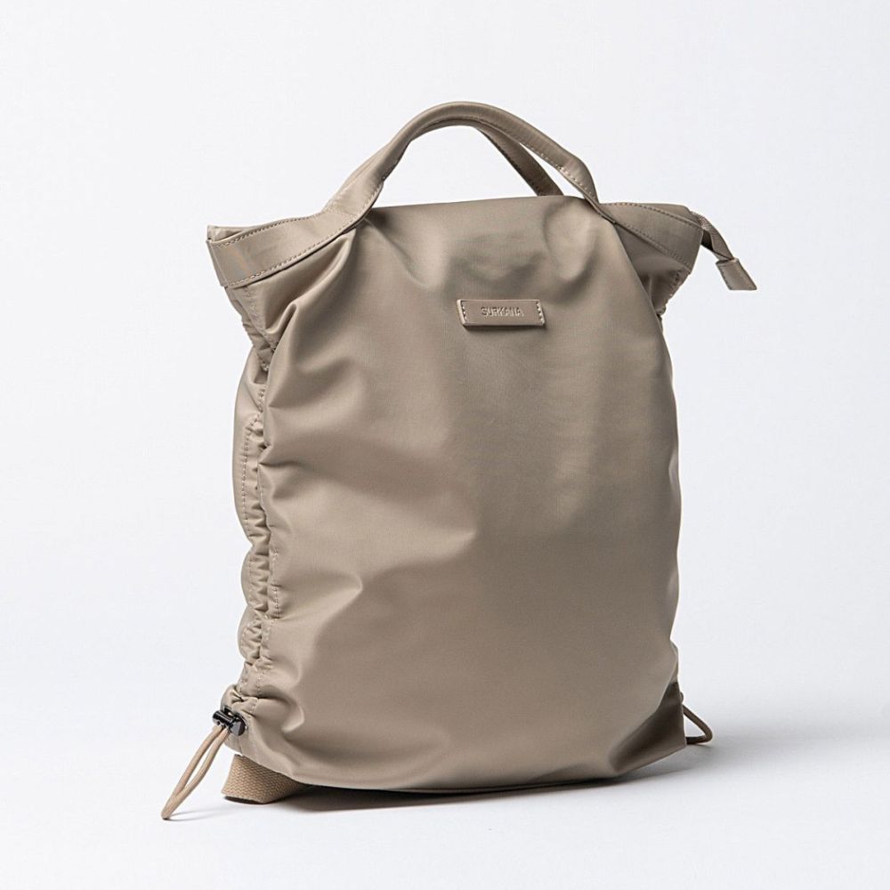 Mochila de Surkana, 90% poliéster 10% poliuretano 2 en el interior, asas regulables, laterales fruncibles, en color beige