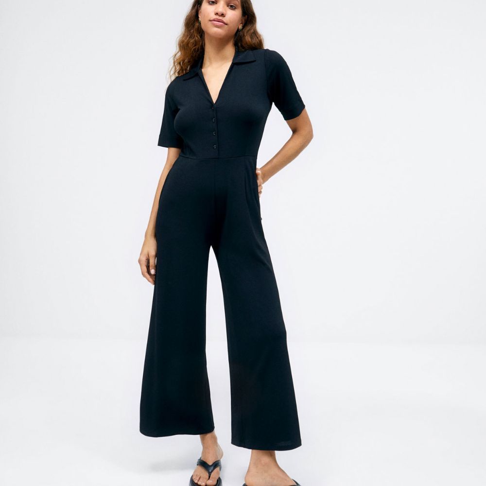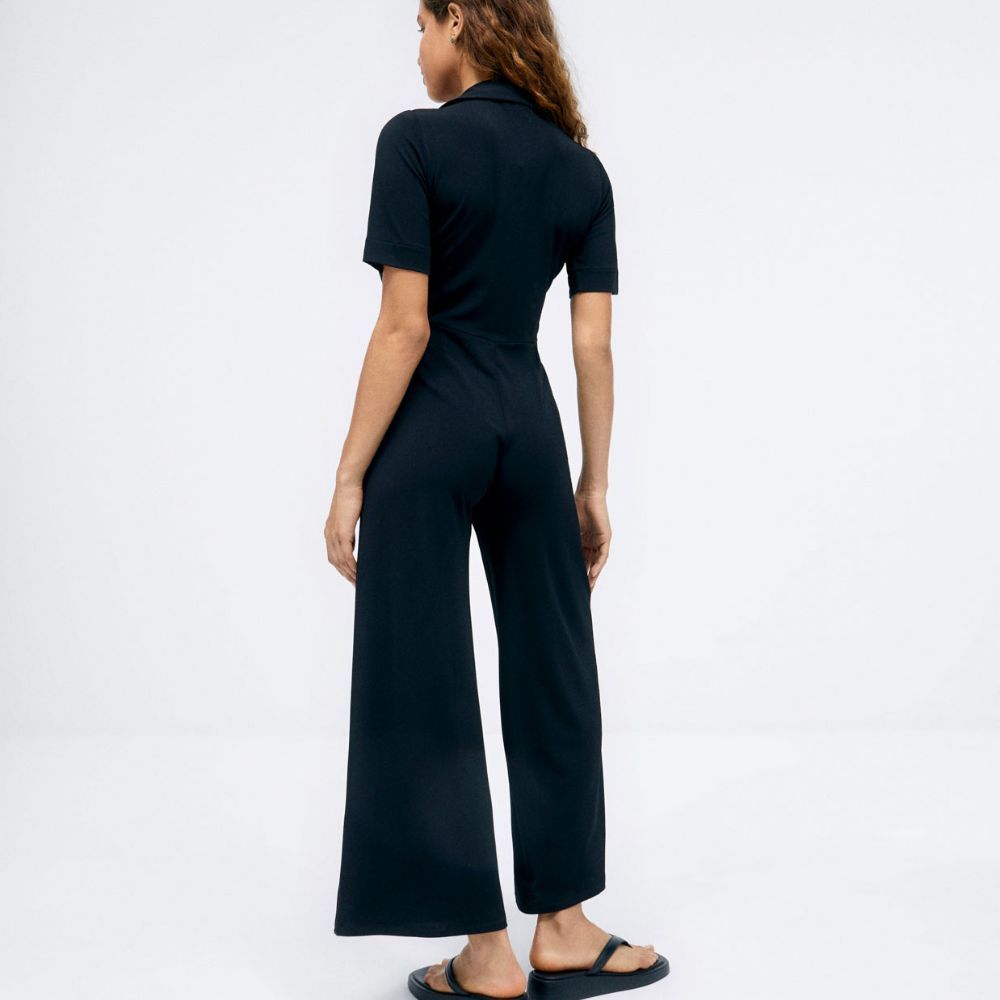 Mono de Surkana, 96% poliéster 4% elastano, de punto, cuello polo con escote pico, cortado en cintura, con dos bolsillos, en color negro