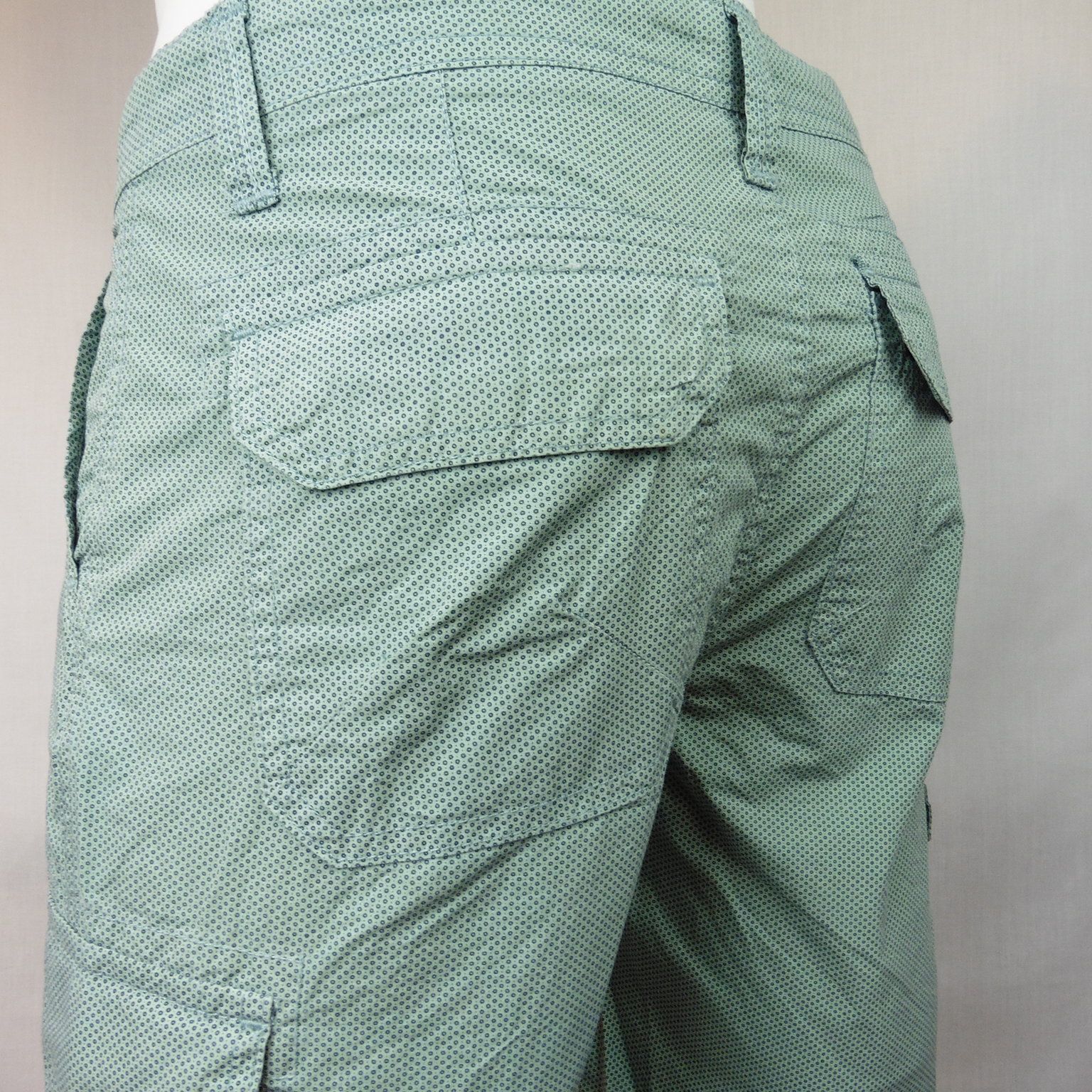Pantalón corto de dos Galgos, 100% algodón con bolsillos cargo laterales, en color verde con mini círculos en tono azul marino