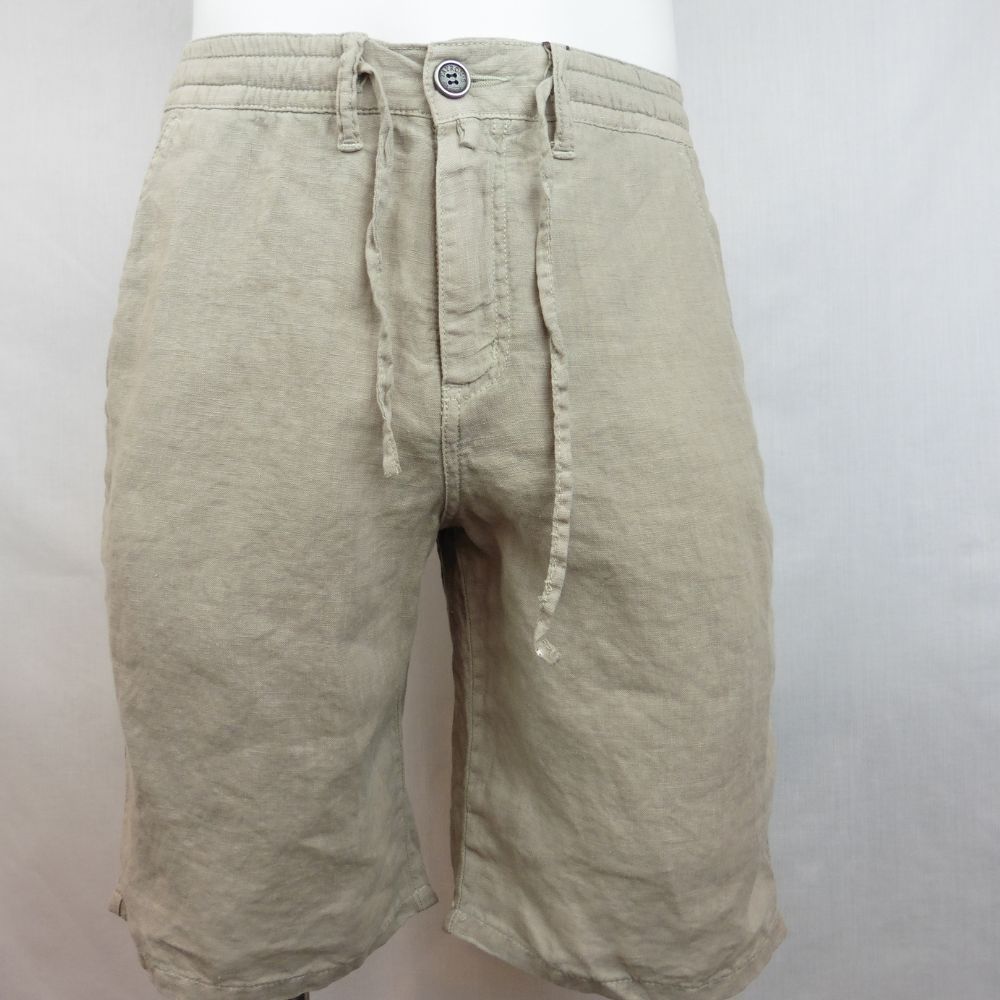 Pantalón corto de Tayron's, 100% lino, con goma y cordón en la  cintura, bolsillos laterales inclinados y bolsillos traseros de plastrón con  velcro, en color arena.