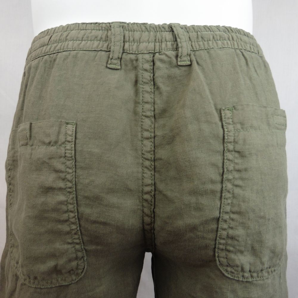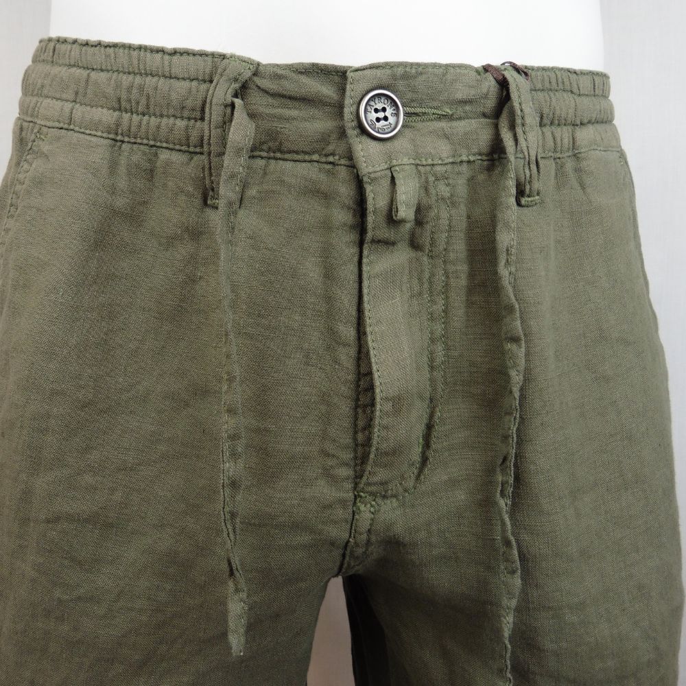Pantalón corto de Tayron's, 100% lino, con goma y cordón en la cintura, bolsillos inclinados en los lados y bolsillos traseros de plastrón con velcro, en color verde
