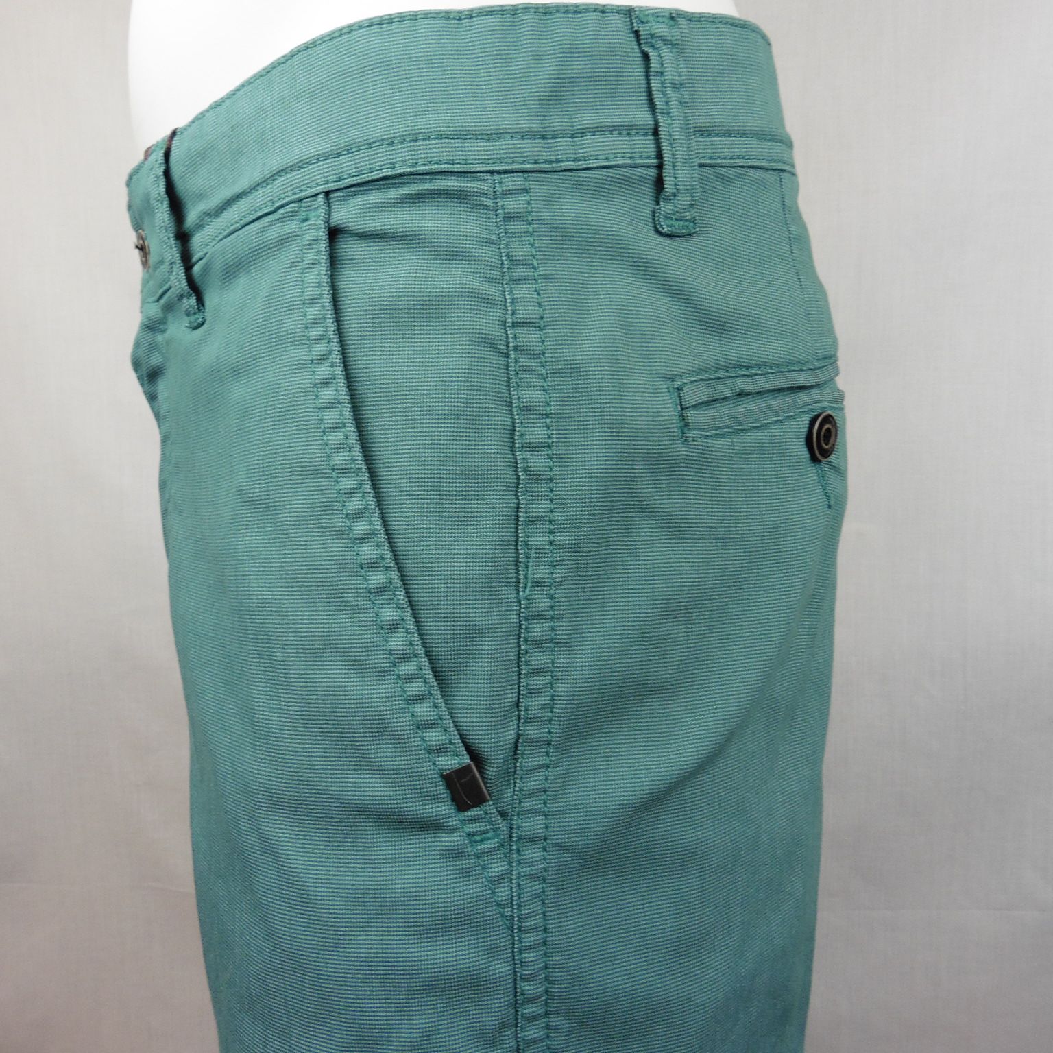 Pantalón corto de Tayron's, 80% algodón 18% poliéster 2% elastómero, en color verde esmeralda con micro dibujo negro