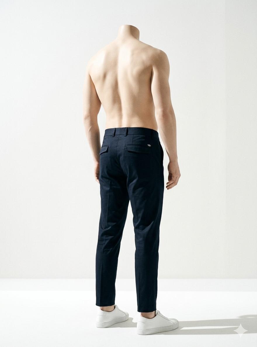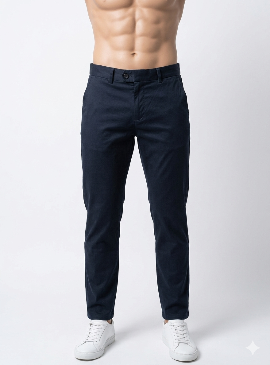 Pantalón de Alexander & Co., 26% tencel 71% algodón 3% elastano, bolsillo inclinado delante, bolsillo de ojal con tapa detrás, semi pitillo, en color azul marino
