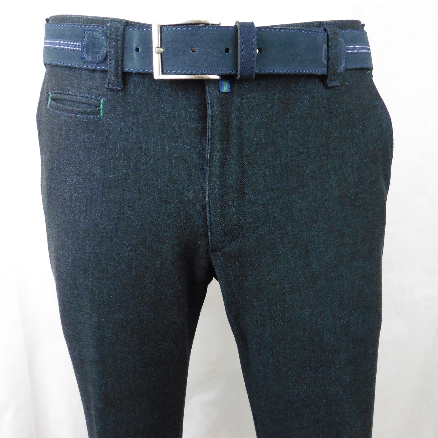 Pantalón de Décimo Hombre, 59% poliéster 34% algodón 7% elastan, tejido cálido en color azúl tinta-negro vigoré, delante dos bolsillos y una cerillera, detras de dos bolsillos de ojal