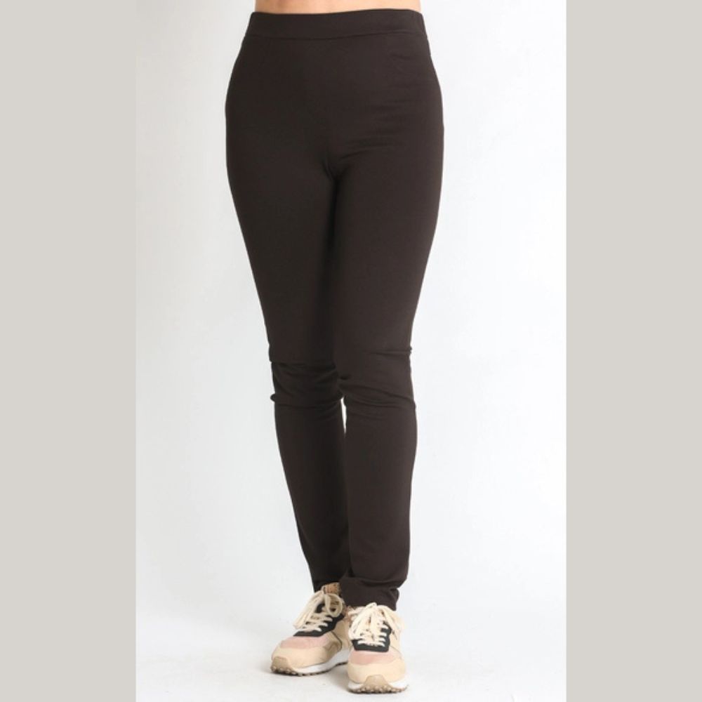 Pantalón de Nayat, 70% poliéster 25% rayon 5% elastomero, goma en la cintura, dos bolsillos simulados, canesú detrás, bragueta simulada, de punto roma en color marrón