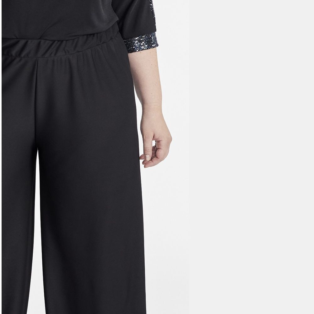Pantalón palazzo de SPG Woman, 95% poliéster 5% elastan, de punto con goma en la cintura, en color negro