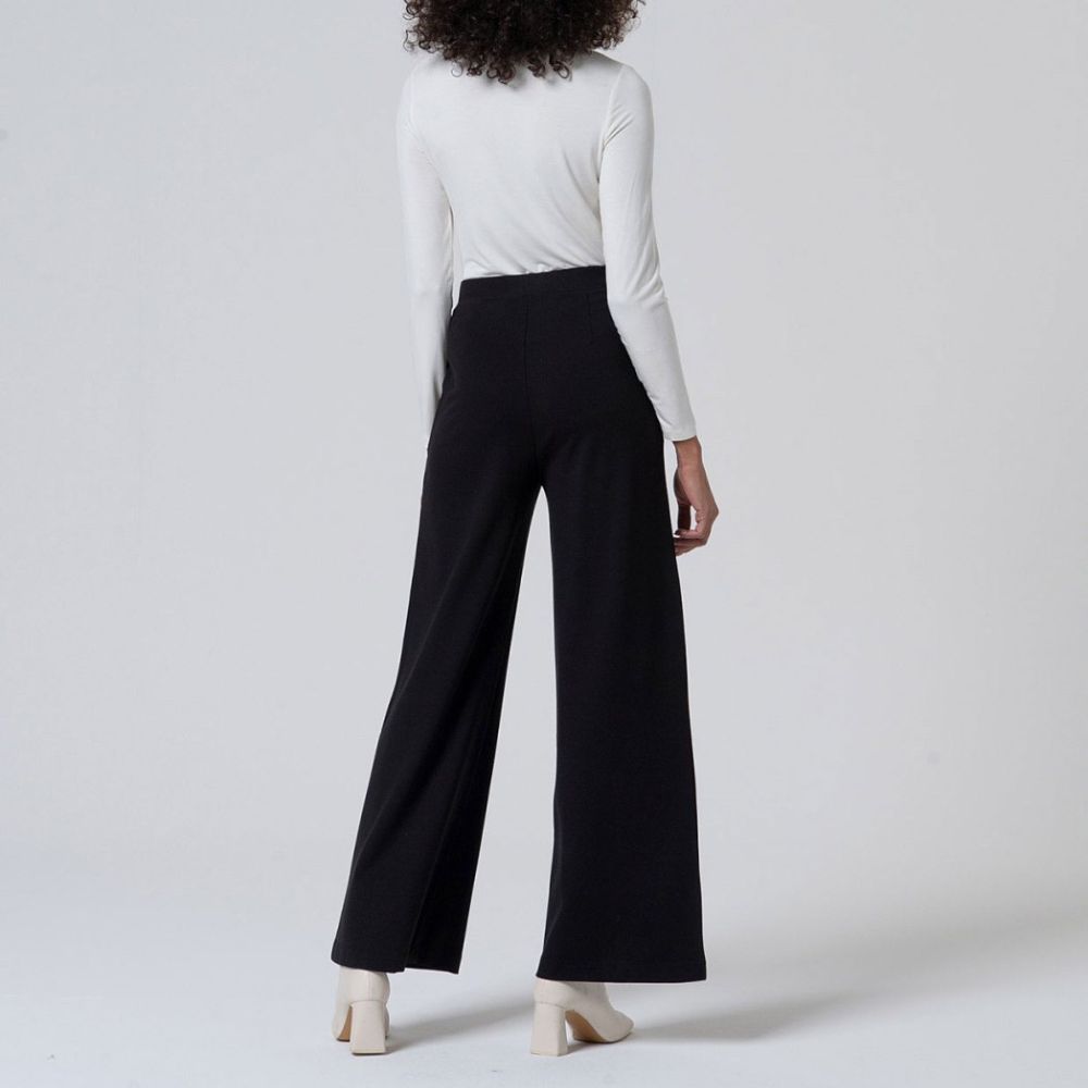 Pantalón de Surkana, 48% modal 48% poliéster 4 % elastano, goma en la cintura, bolsillos inclinados laterales, camal ancho, de punto suave en color negro
