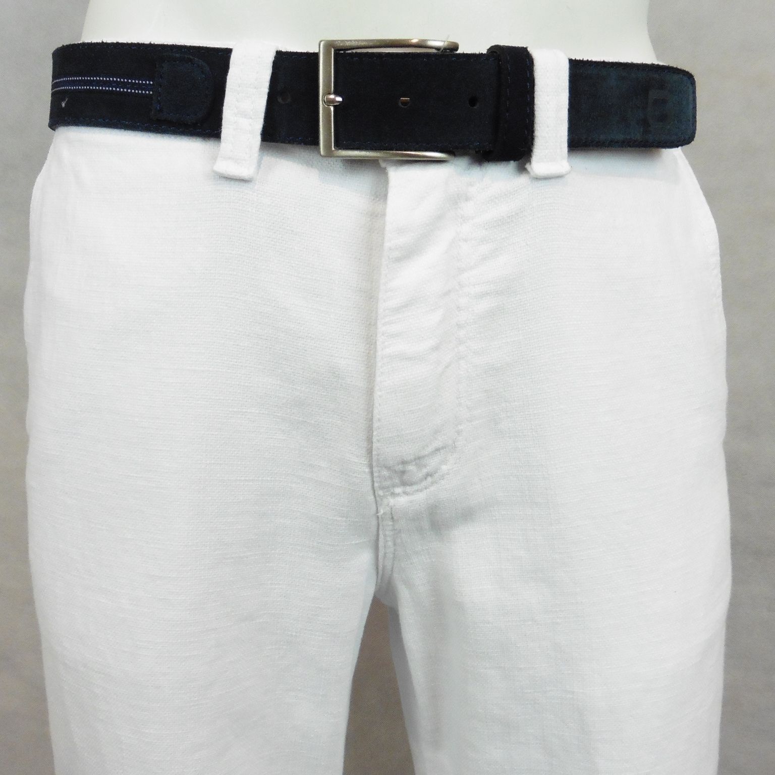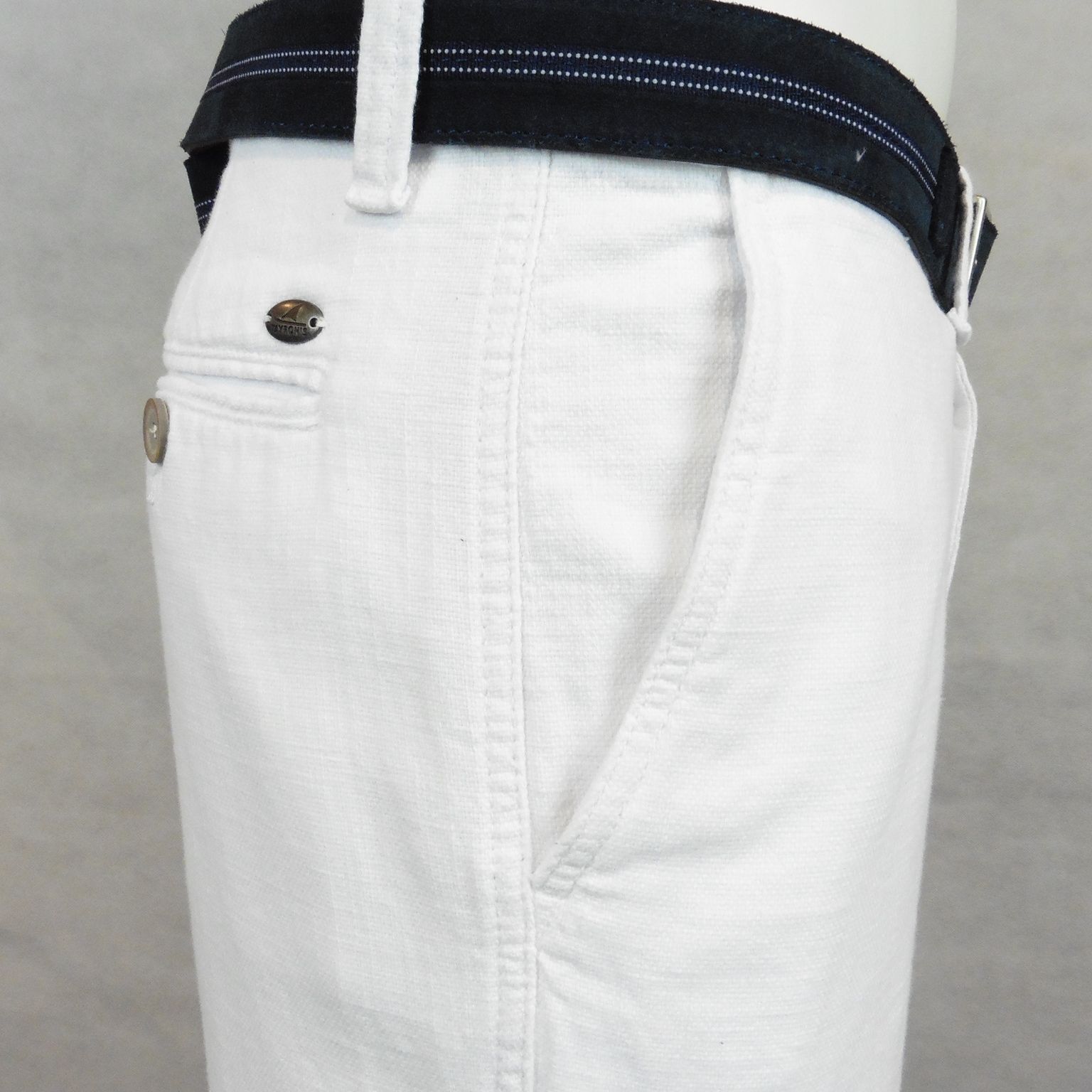 Pantalón de Tayron's, 80% algodón 20% lino, semi pitillo, tejido grueso como de saco formando mini cuadrados entrelazados, en color blanco