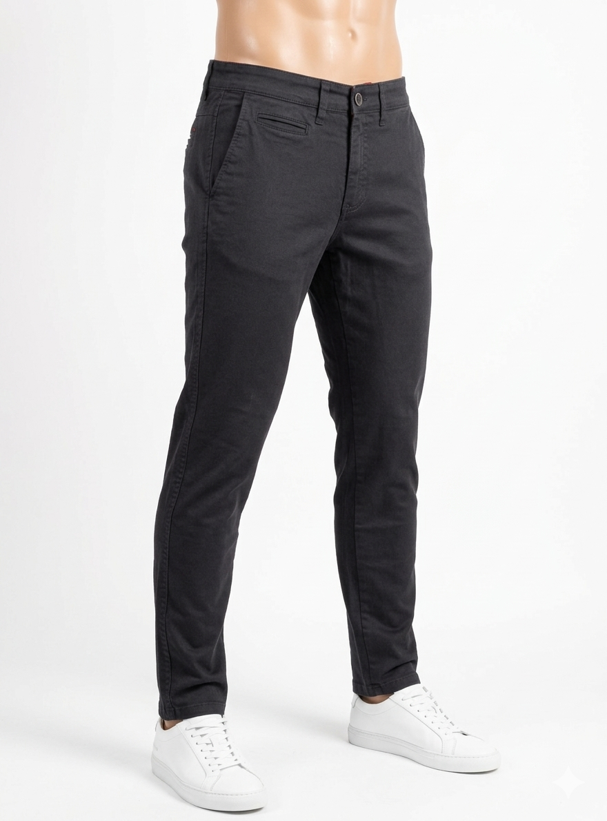 Pantalón de West, 98% algodón 2% elastano, semi pitillo, con bolsillos inclinados delante y bolsillos de ojal con botón detrás, en color negro