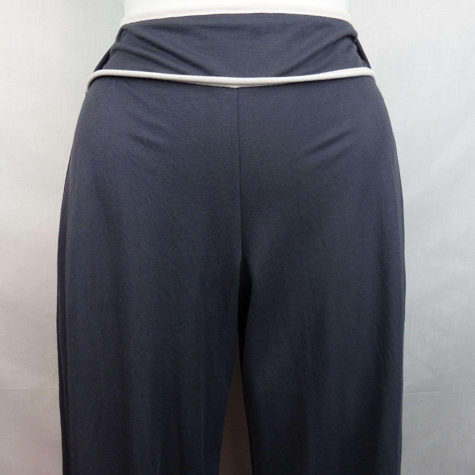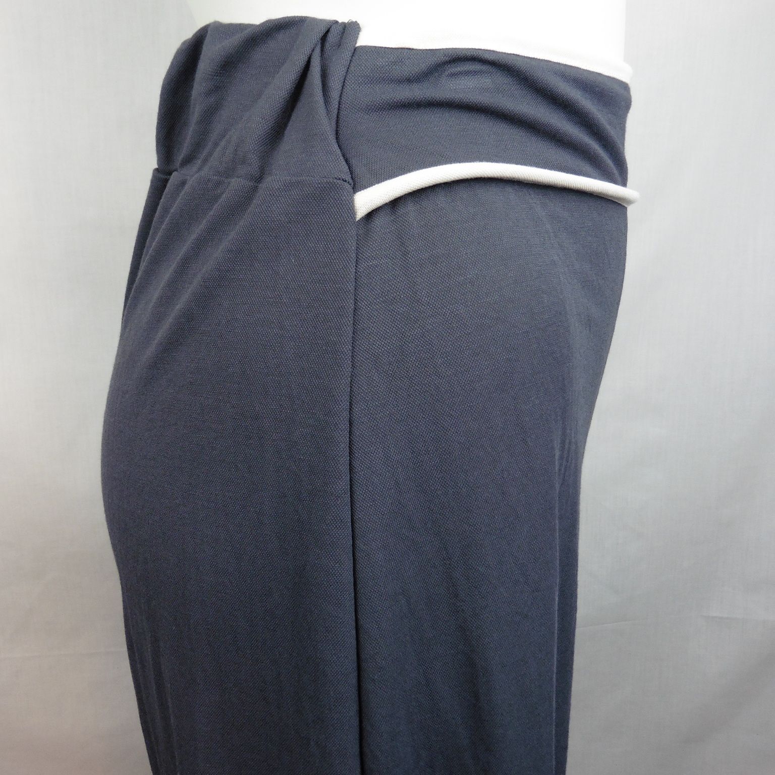 Pantalón de WNT Collection, 55% viscosa 45% nailon, de punto, con goma detrás en la cintura , camal ancho tobillero, en color gris con vivo en color crudo en la cintura