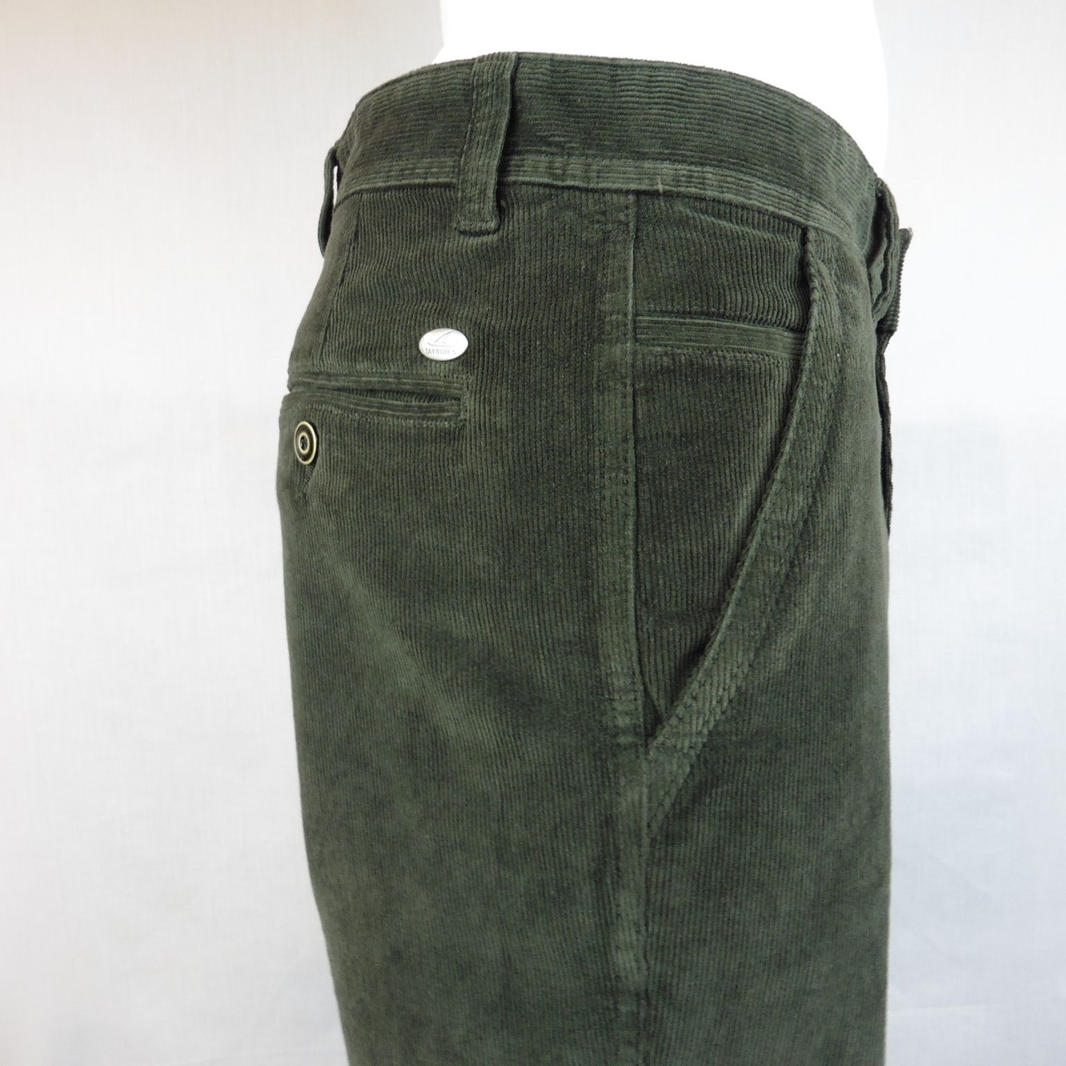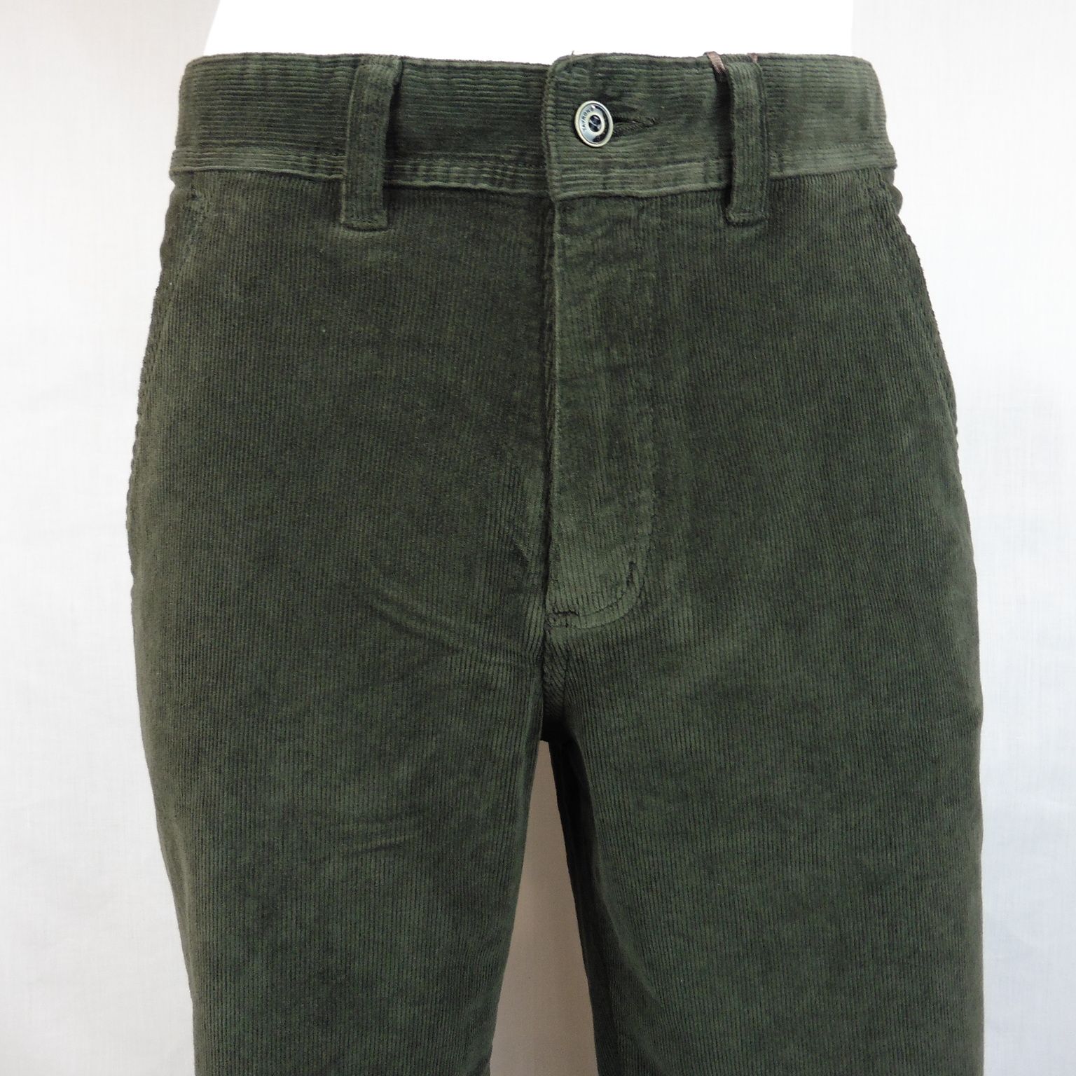 Pantalón pana de Tayron's, 97% algodón 3% elastano, en color verde oscuro, 2 bolsillos inclinados delante con cerillera de ojal en el derecho y 2 bolsillos de ojal con botón detrás