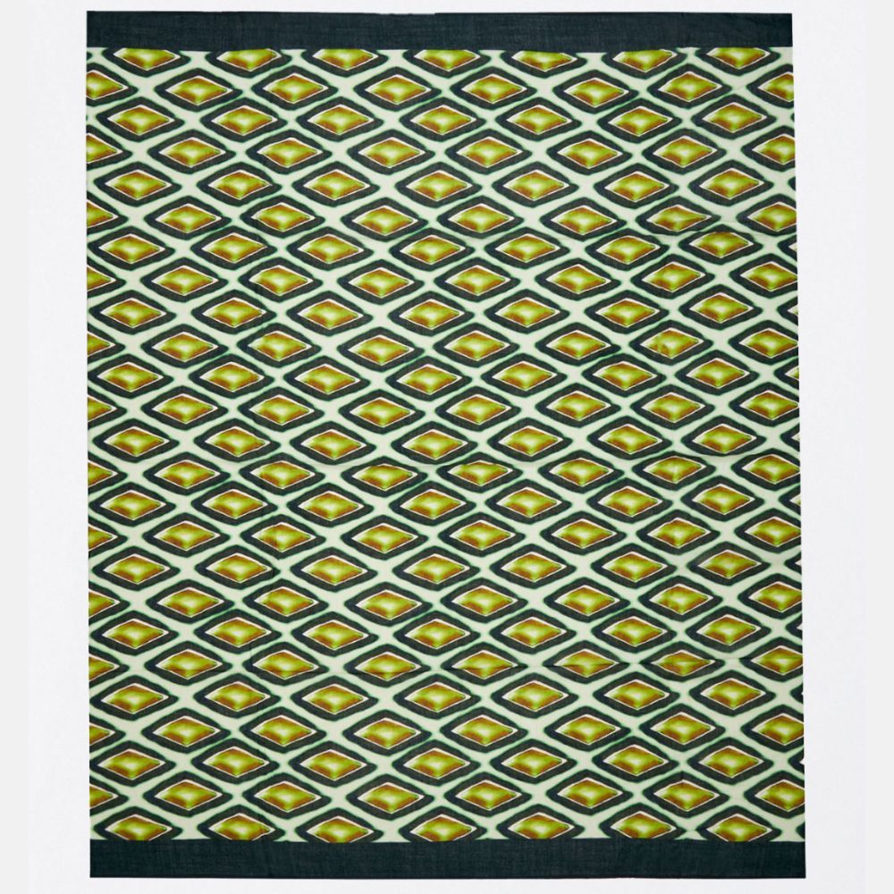 Pañuelo de Surkana, 100% viscosa, en color verde oscuro con estampado de rombos grandes en tonos verdes y camel