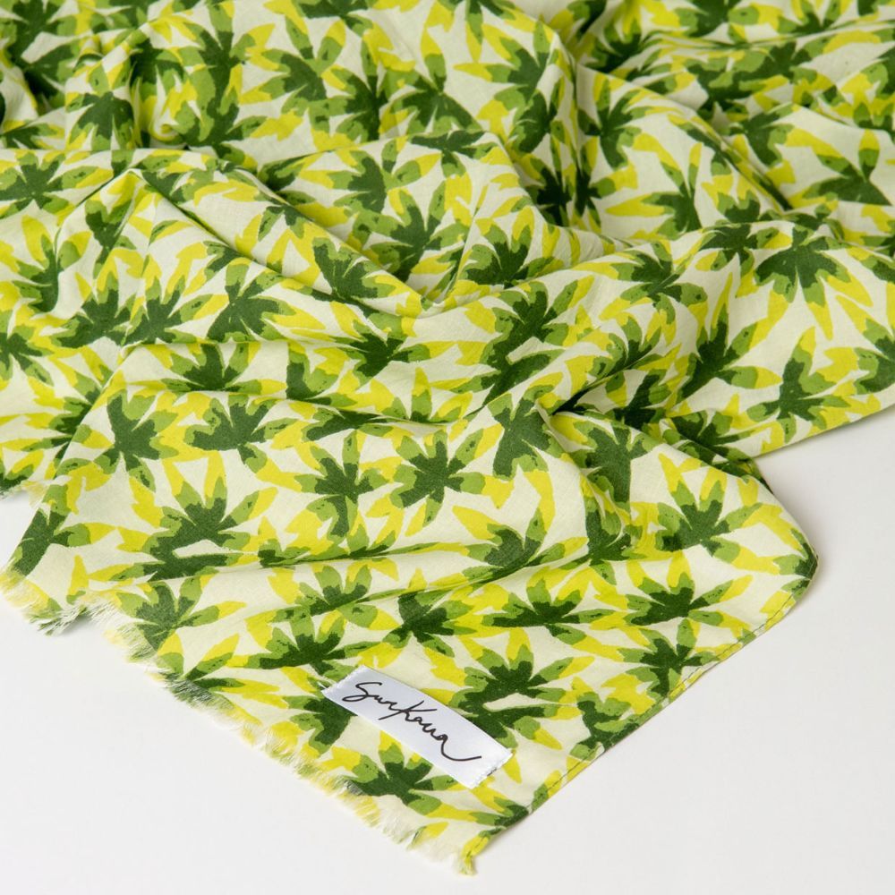 Pañuelo de Surkana, 100% algodón, estampado de flores en tonos lima y verde,