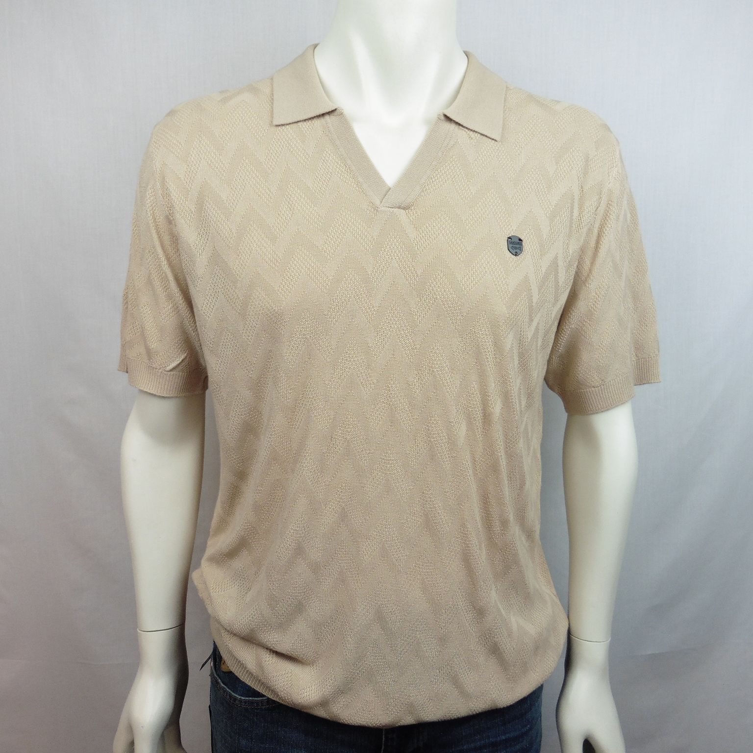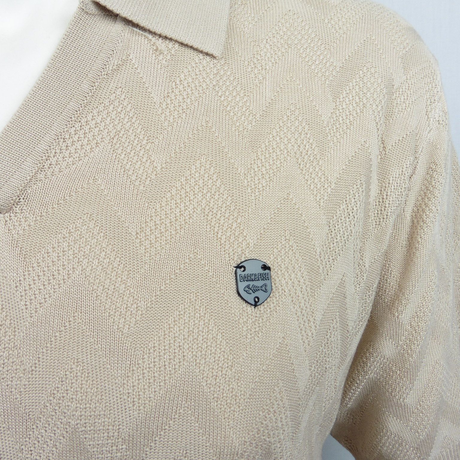 Polo de Dark & Fish 100% viscosa, de punto con desagujado formando zig zag, escote uve, en color beige