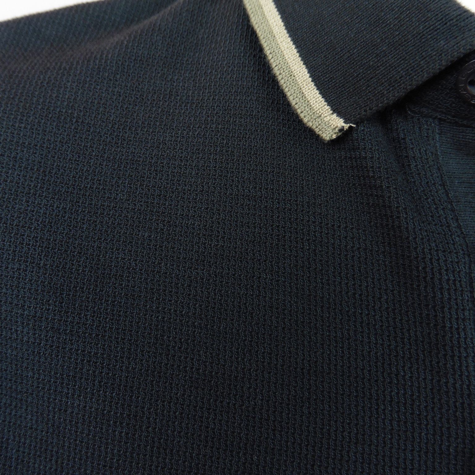 Polo de Dos Galgos, 100% algodón, de punto en relieve, color gris oscuro con vivos en el cuello en tonos beige y verde, cortes laterales