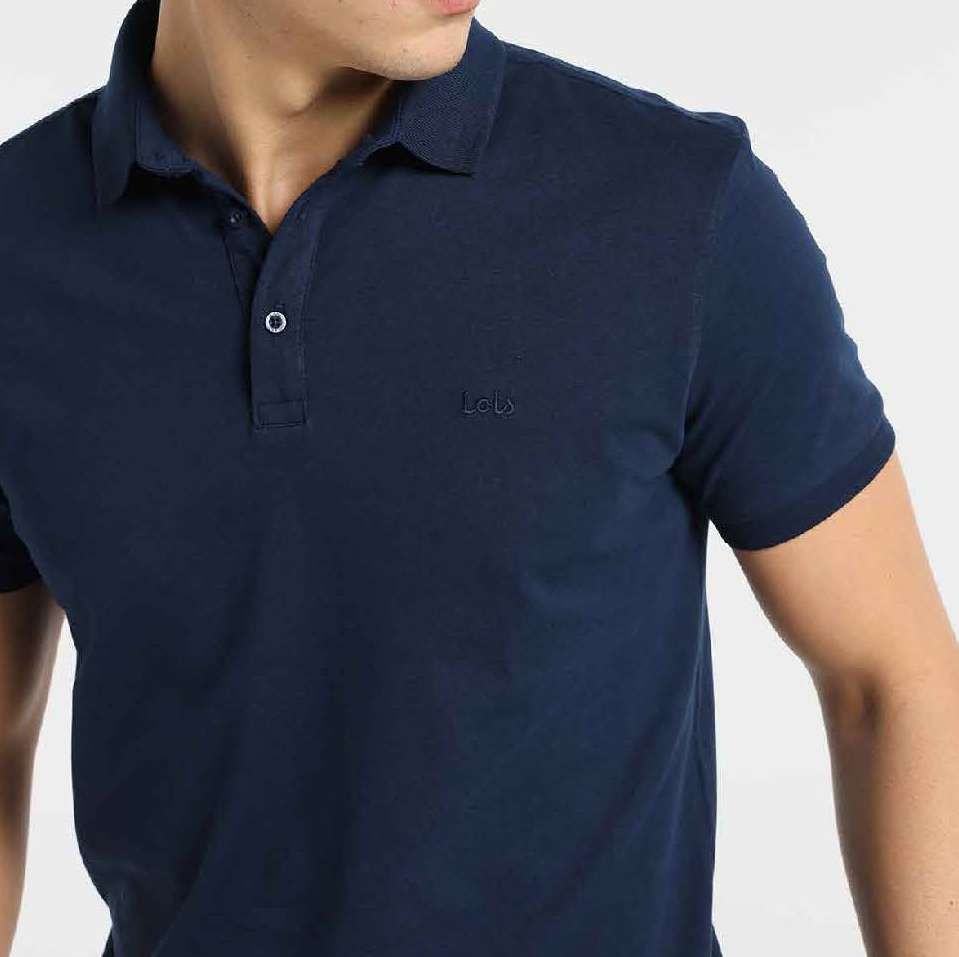 Polo de Lois, 100% algodón plano, en color azul marino, con pie de cuello. y cortes laterales