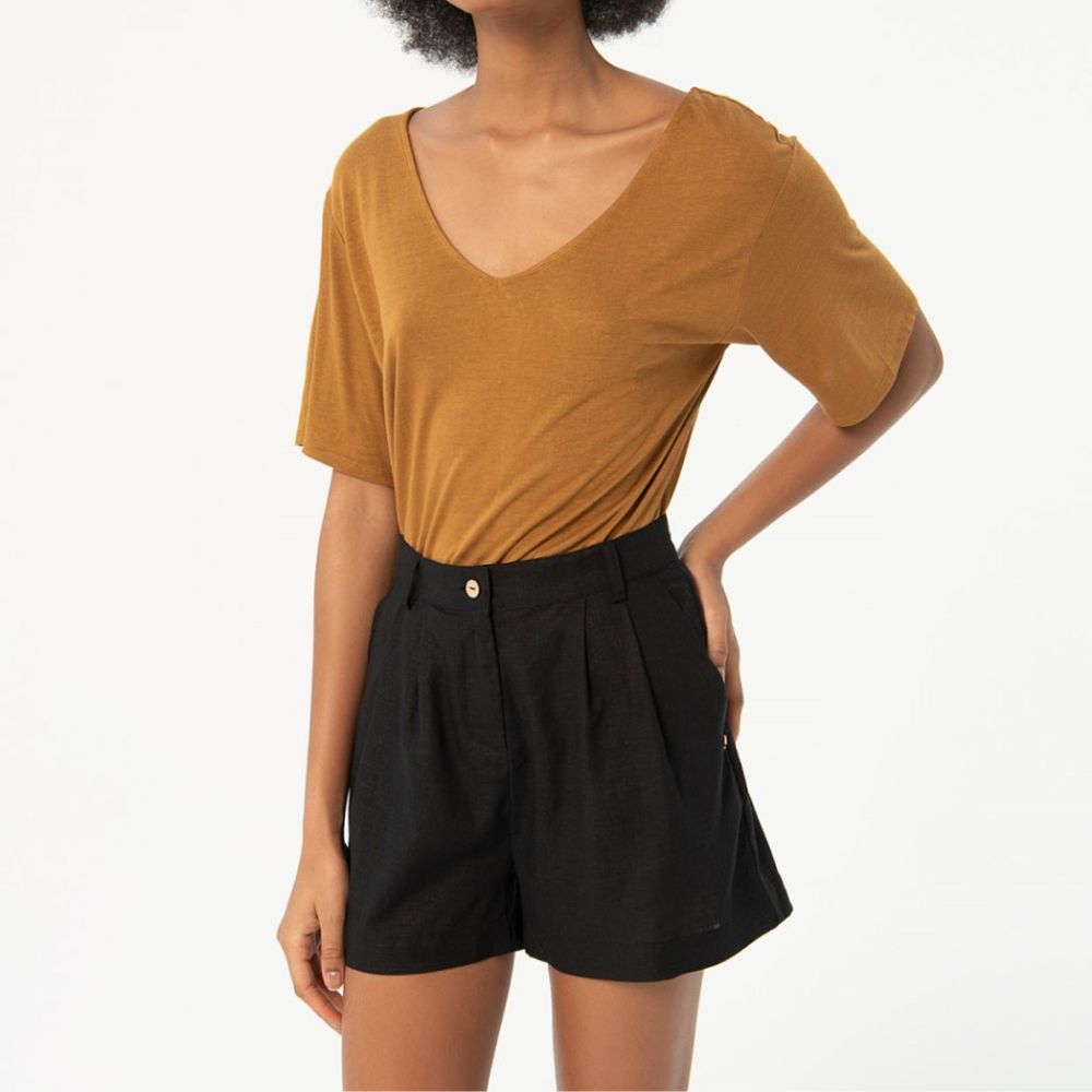 Short de Surkana, 70% viscosa 30% lino, con pinzas en la cintura, dos bolsillos, en color negro