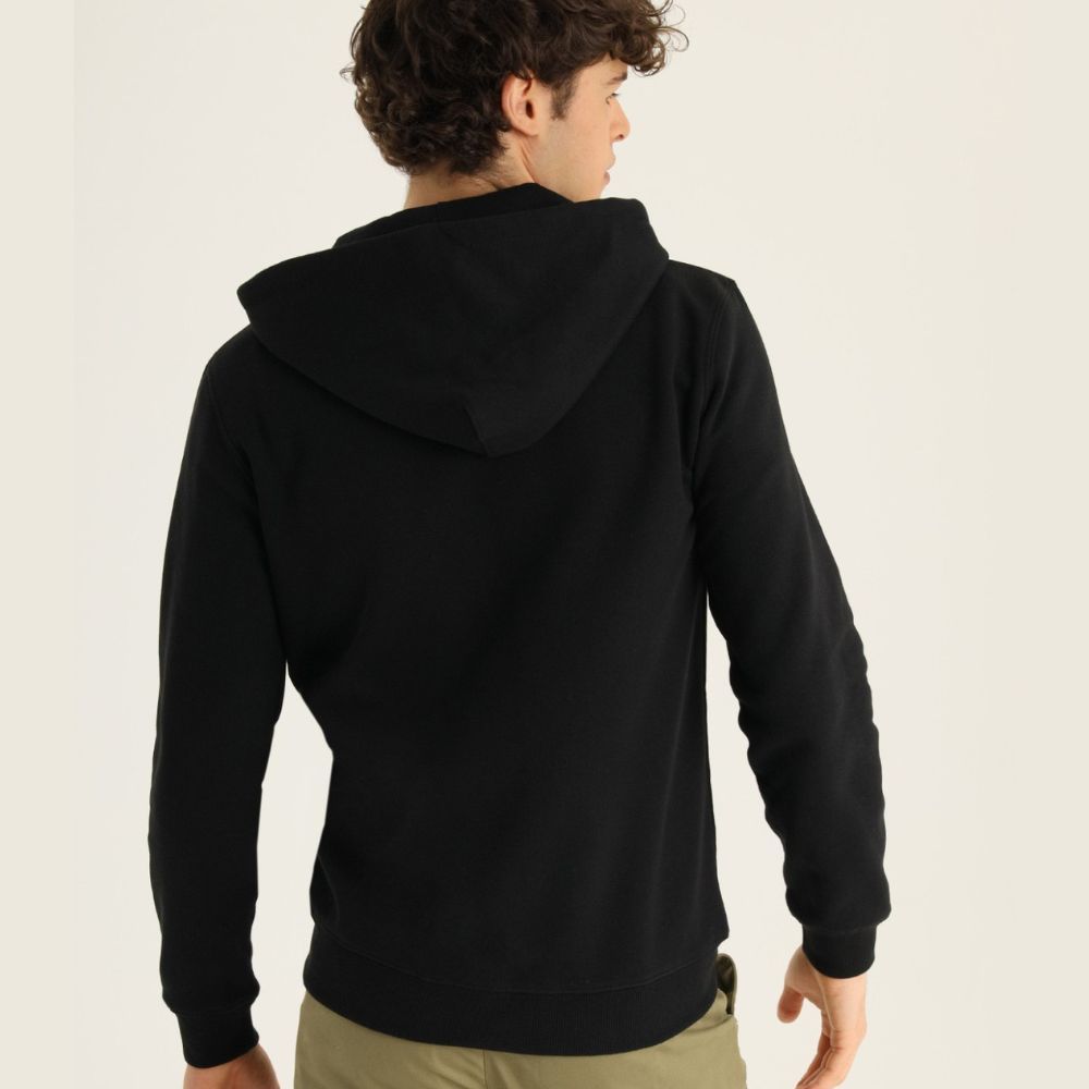 Sudadera de Lois, 60% algodón 40% poliéster, interior afelpado, con cremallera, capucha y bolsillo tipo canguro, en color negro