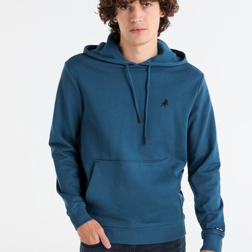 Sudadera de Lois, 100% algodón, con capucha y bolsillo tipo canguro, en color azul