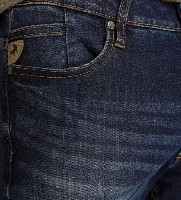 color azul desgastado con hilo naranja, 27 cm. de ancho de camal bajo bolsillo,