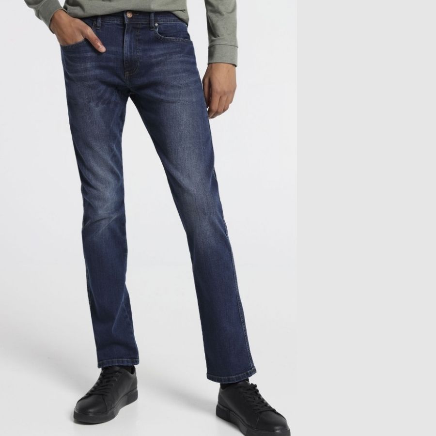 en color azul semi desgastado, camal recto