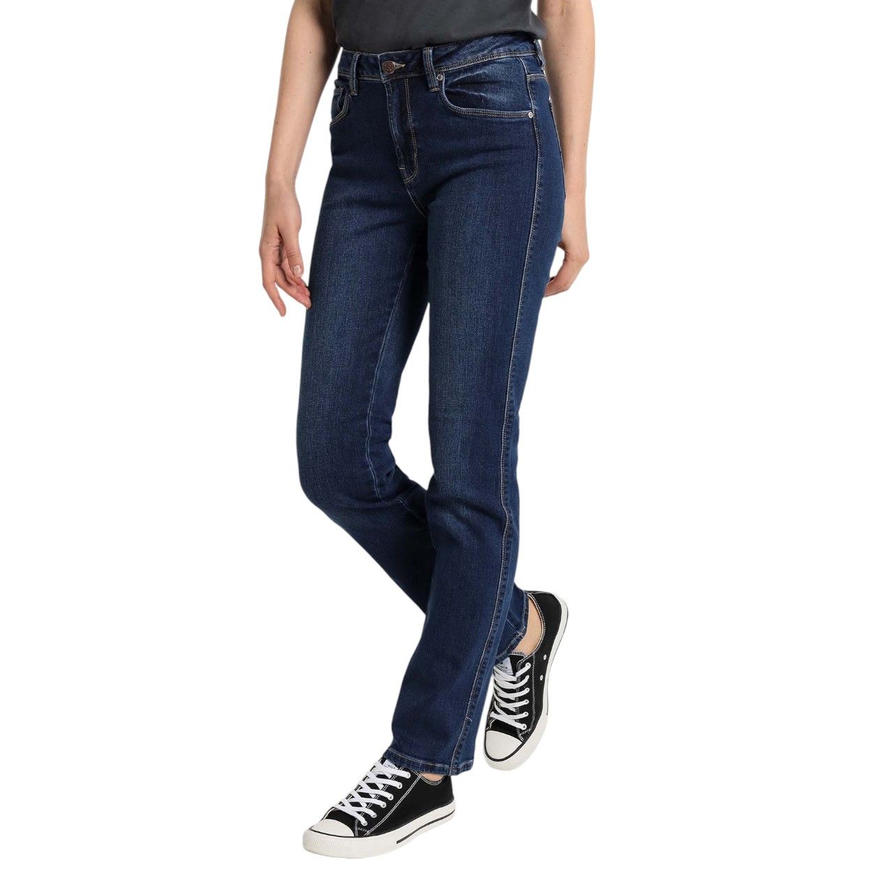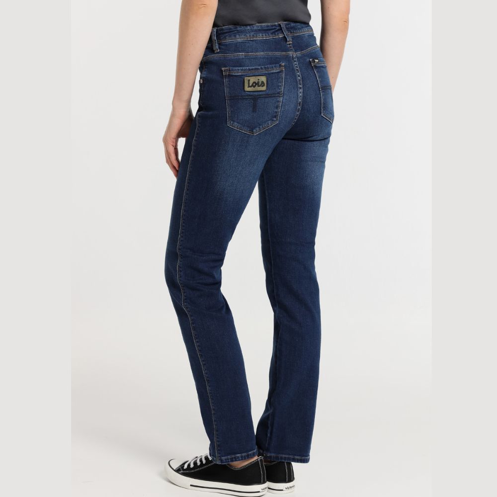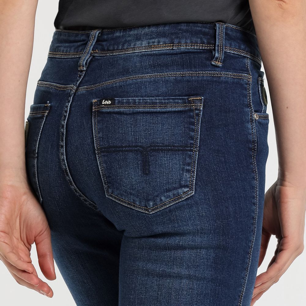 Tejano monicnina de Lois, 99% algodón 1% elastano, en azul medio desgastado, camal recto