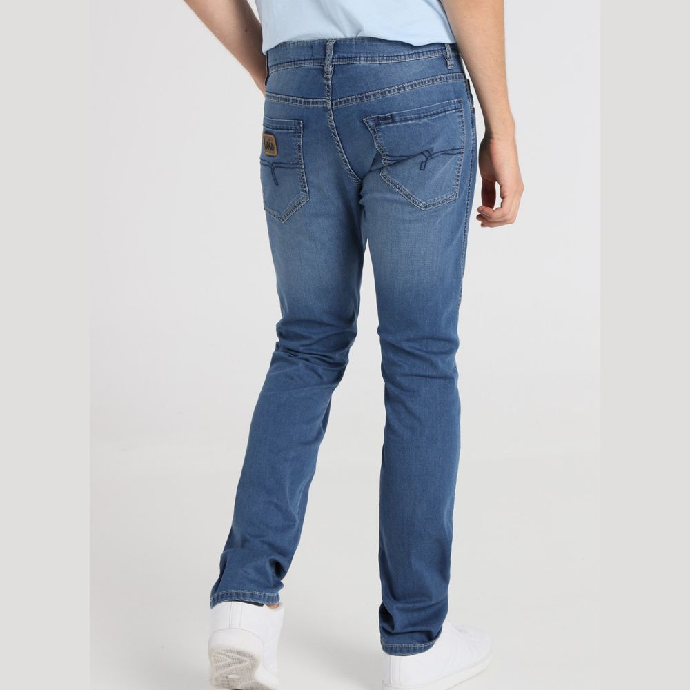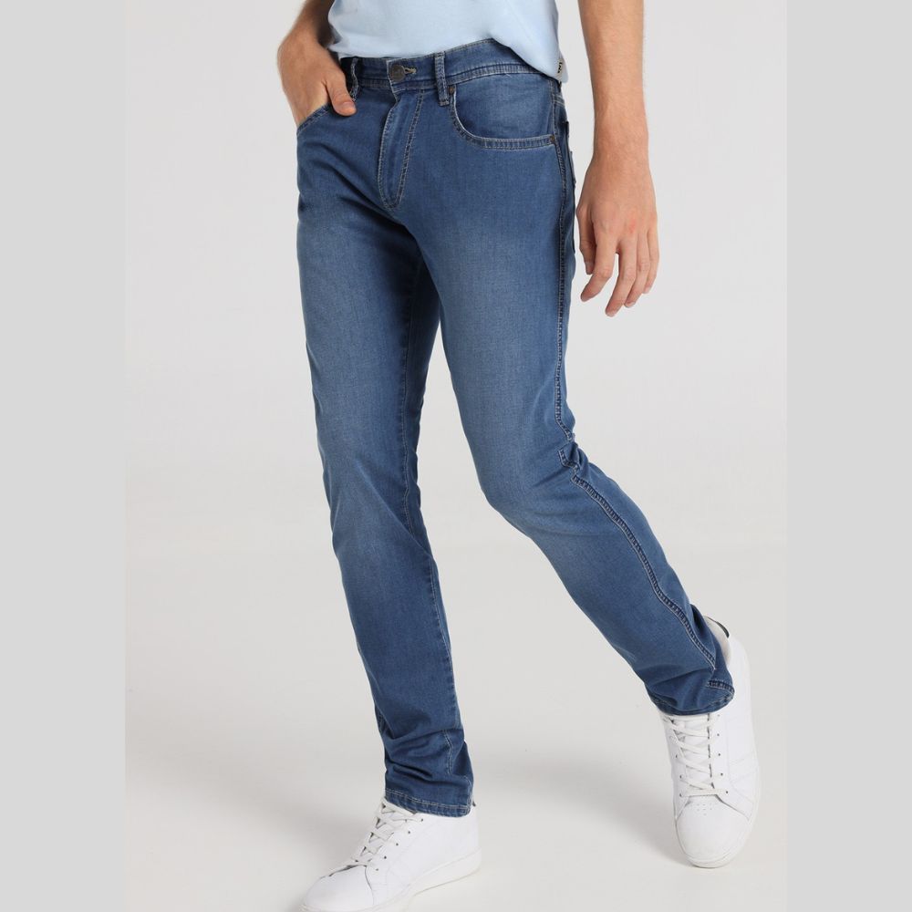 Tejano fino marvin relly de Lois, 67% algodón 21% poliéster 10% rayon 2% elastano, modelo regular, en color azul medio desgastado