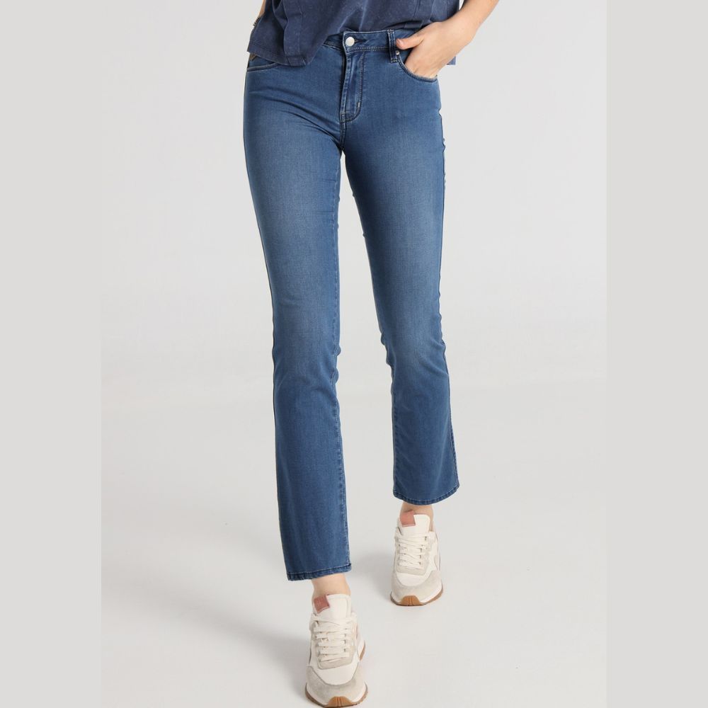 Tejano monic really de Lois, 67% algodón 21% poliéster 10% rayon 2% elastano, en azul medio semi desgastado, camal recto