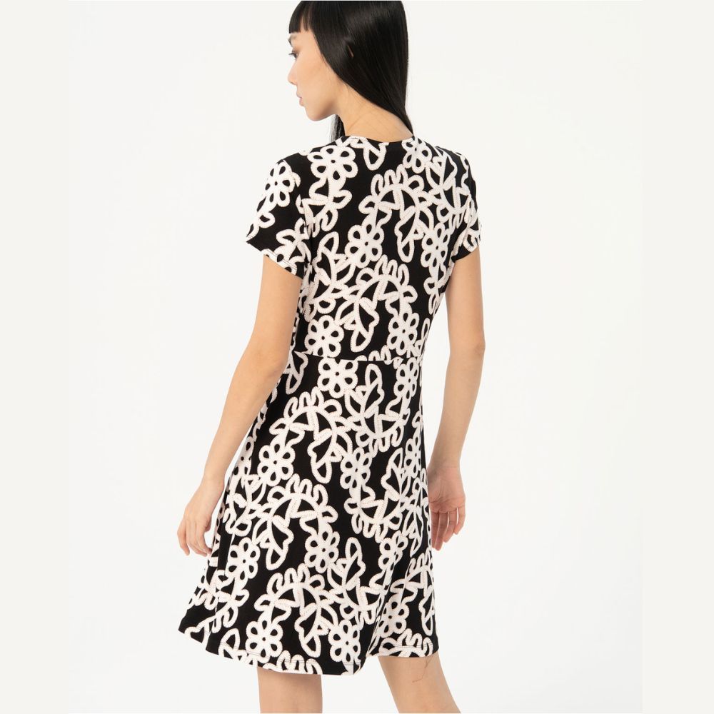 Vestido de Surkana, 95% viscosa ecovero 5% elastano, largo de punto, en color blanco con estampado de flores grandes negras, manga japonesa, escote cruzado, cortado bajo pecho
