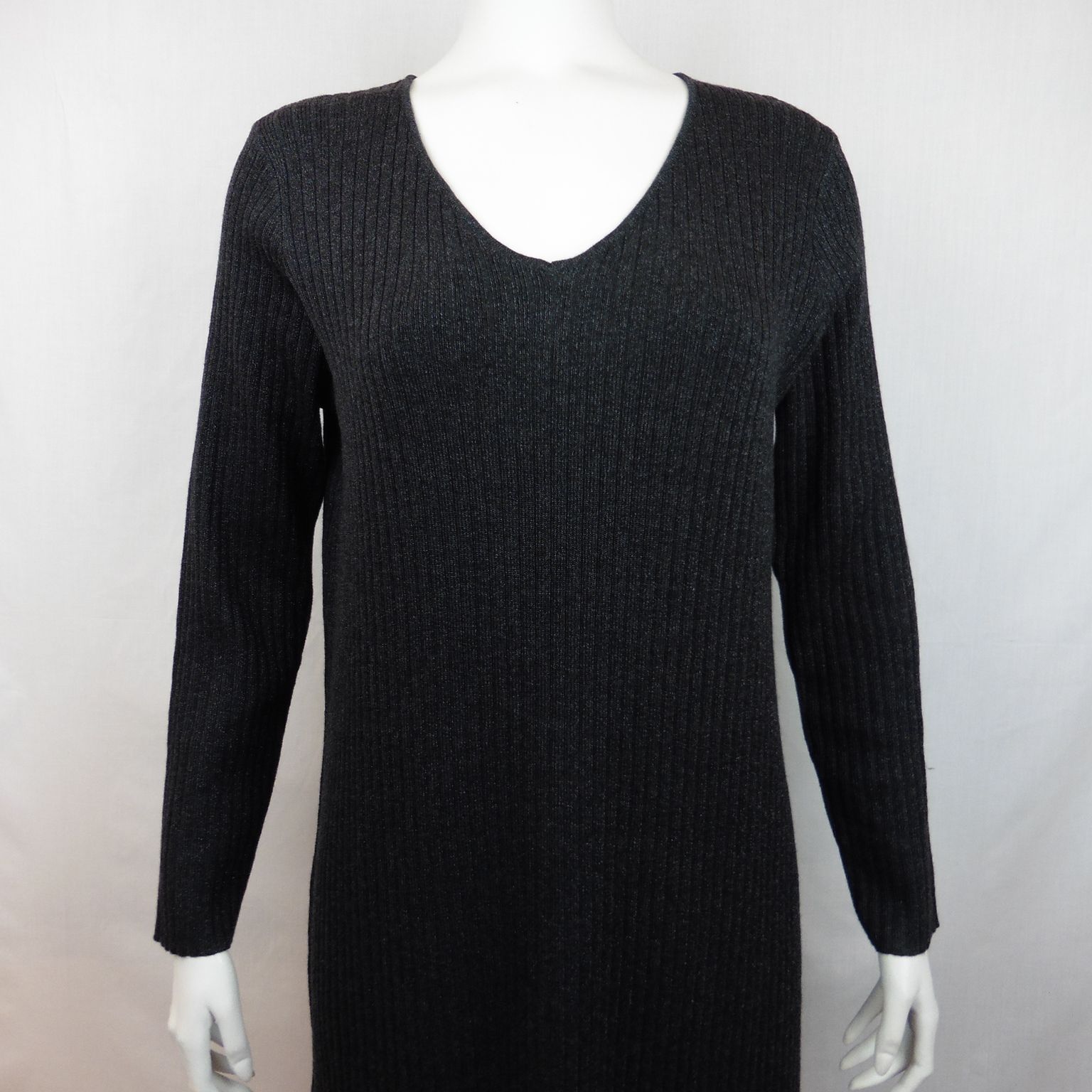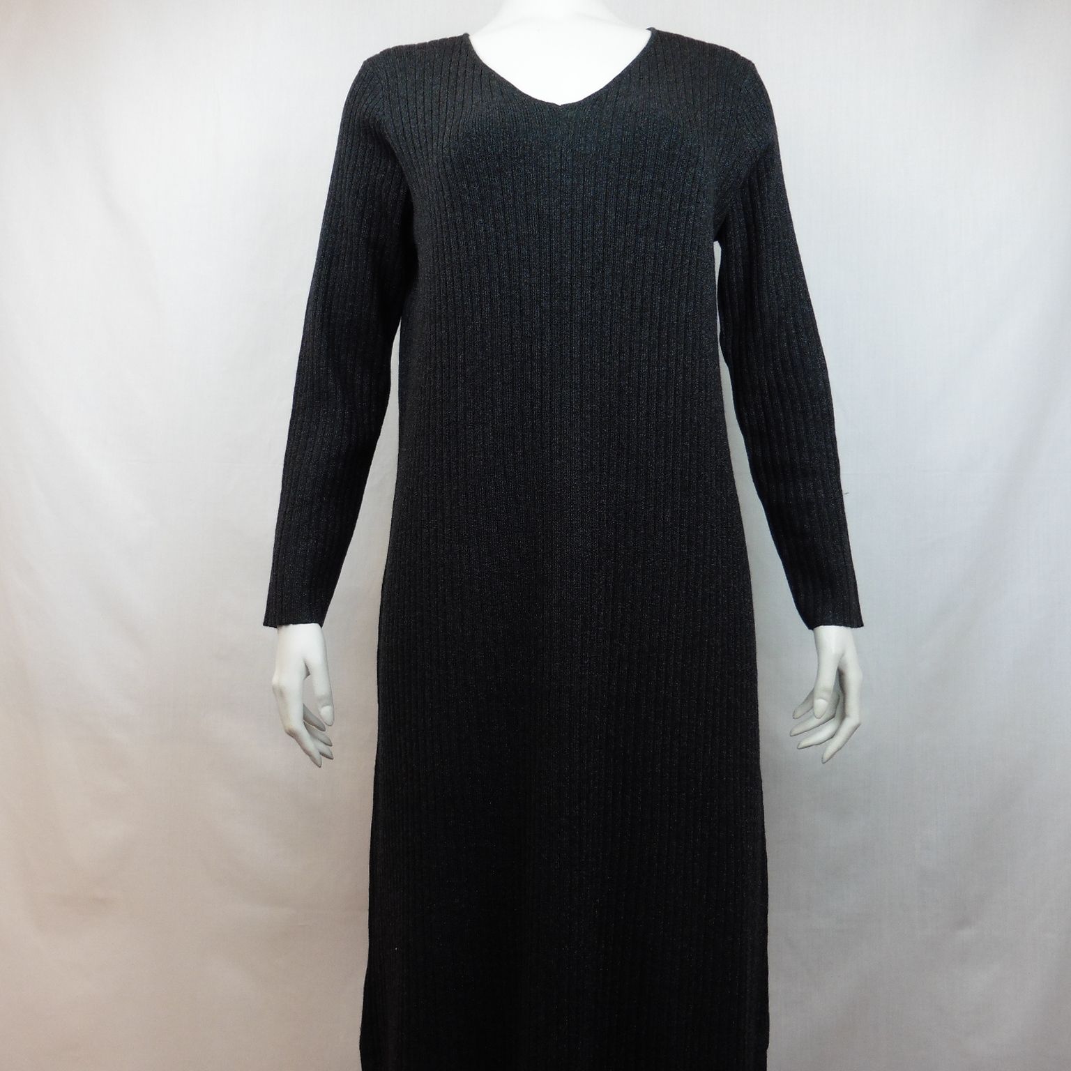 Vestido de WNT Collection, 30% acrílico 25% nailon 39% lúrex 6% lana, escote pico, cortes laterales, de canalé en color negro